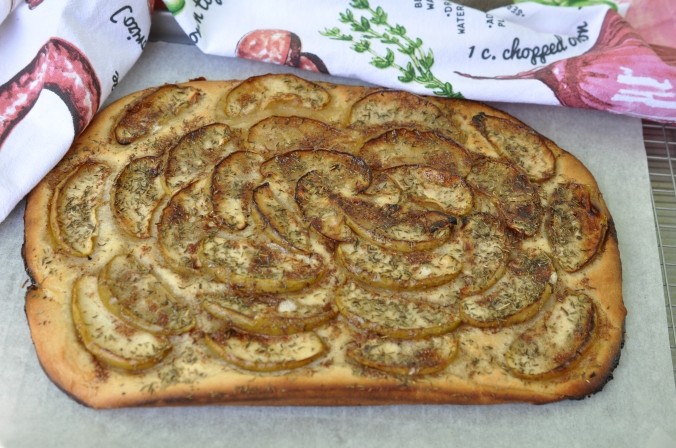 Making focaccia bread is fun because, like a blank canvas, it can be paired with any type of topping, which can create a variety of flavors and textures. Today I baked this delicious flatbread with green apple and thyme in the oven. I served it with afternoon tea and it was incredibly tasteful.