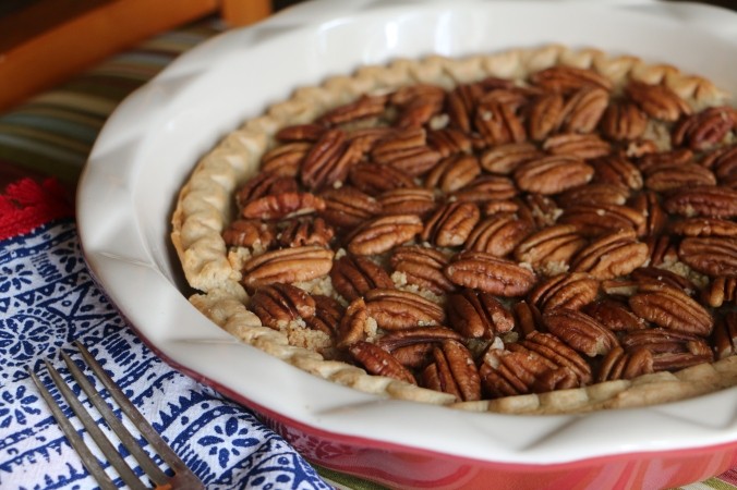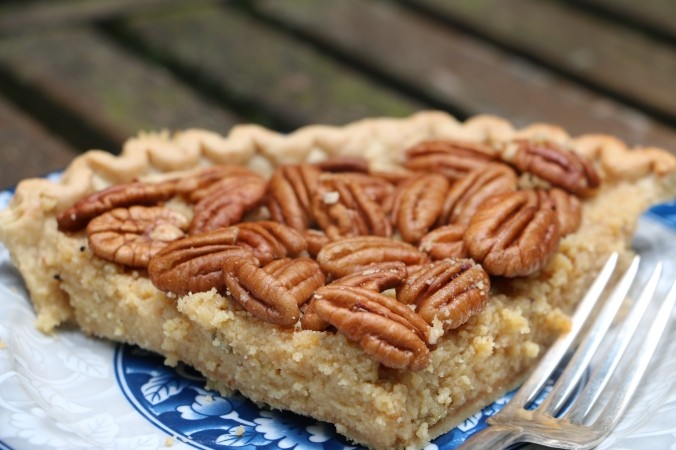 - Once the pie is baked, take it out of the oven and garnish it with pecans. Serve warm.