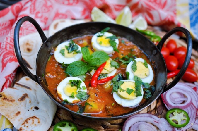Growing up in Pakistan, my mother and grandmother used to make spicy curry with potatoes and perfect boiled eggs. We served it with rice or bread. It was packed with spices and tasted irresistible. I still recall the flavor and aroma. It is one of my favorite vegetarian dishes.